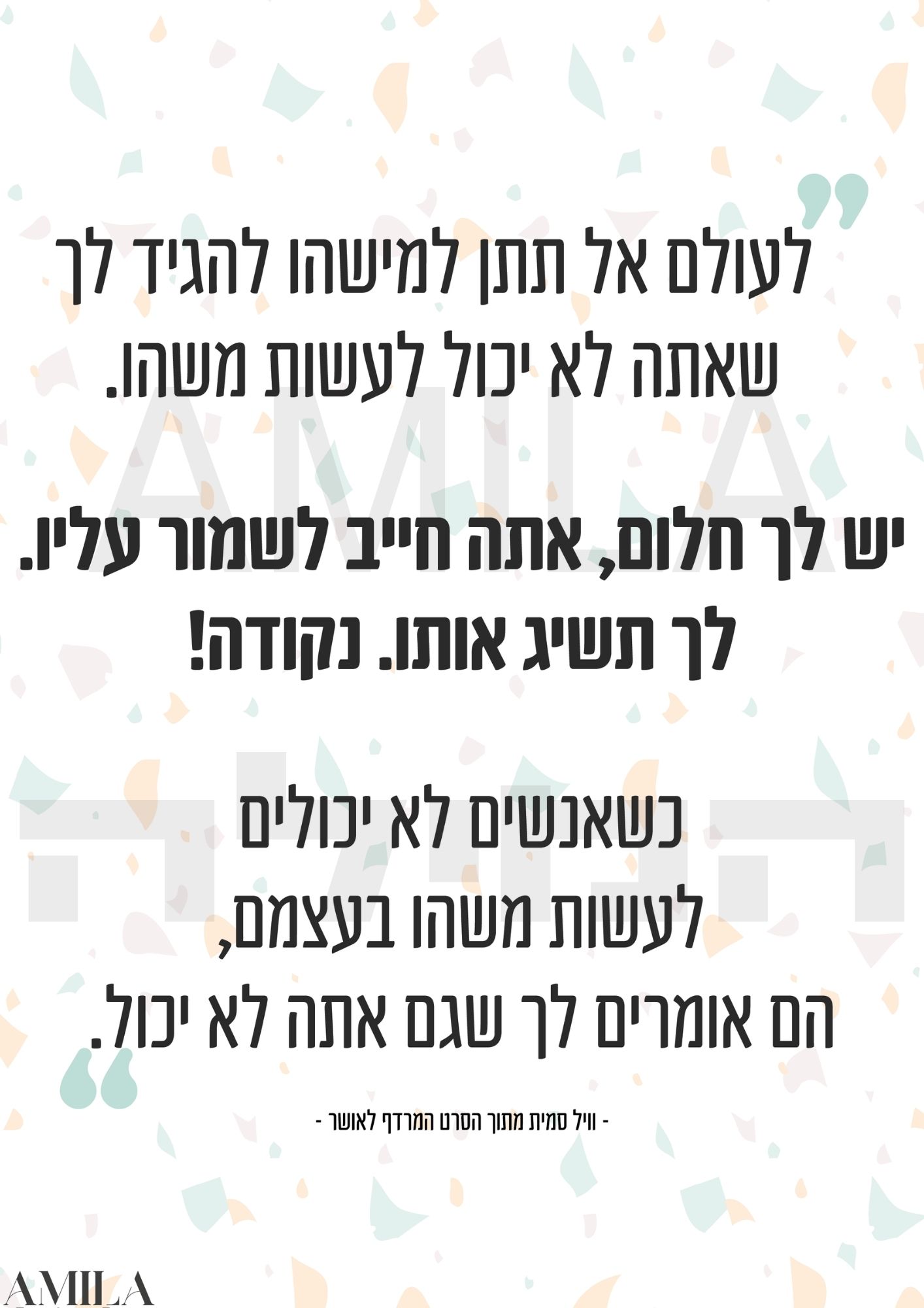 1.תמונה מעצימה מודפסת על דף כרומו 300 גרם איכותי, בגודל A4 (21×30 ס״מ).